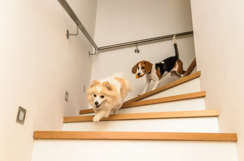 If you know another dog who’s confident on stairs, let your dog watch. Dogs learn from other dogs. Just make sure the model dog is calm and steady — not racing up and down at full speed.