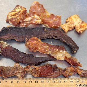 Chicken Jerky Wedges – 500 gram bag, approximately 50 Pieces per bag, approximately 50mm long, 30mm wide and 5mm thick