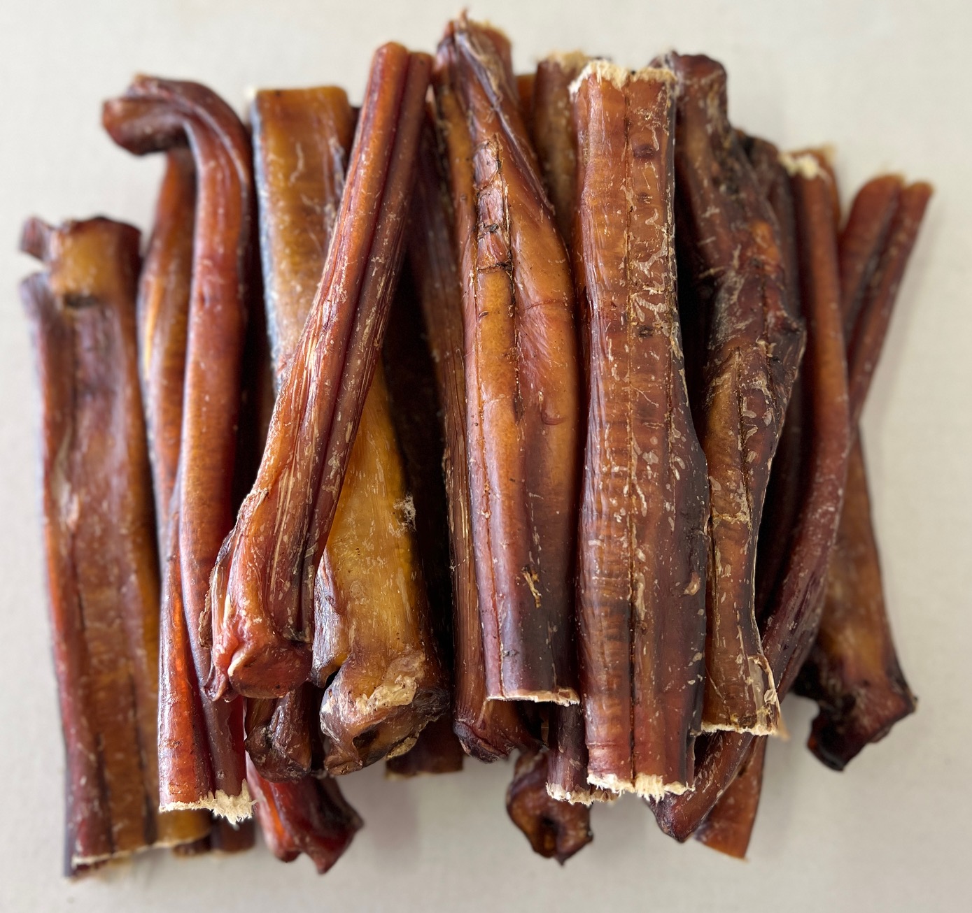 ⚠️ Please note: These are not for every dog. Even Red Dog enjoys them but sometimes gives up halfway! If your dog has mastered our Pizzles and Beef Tendons and still needs something tougher, Monster Bully Sticks may be the perfect fit.
