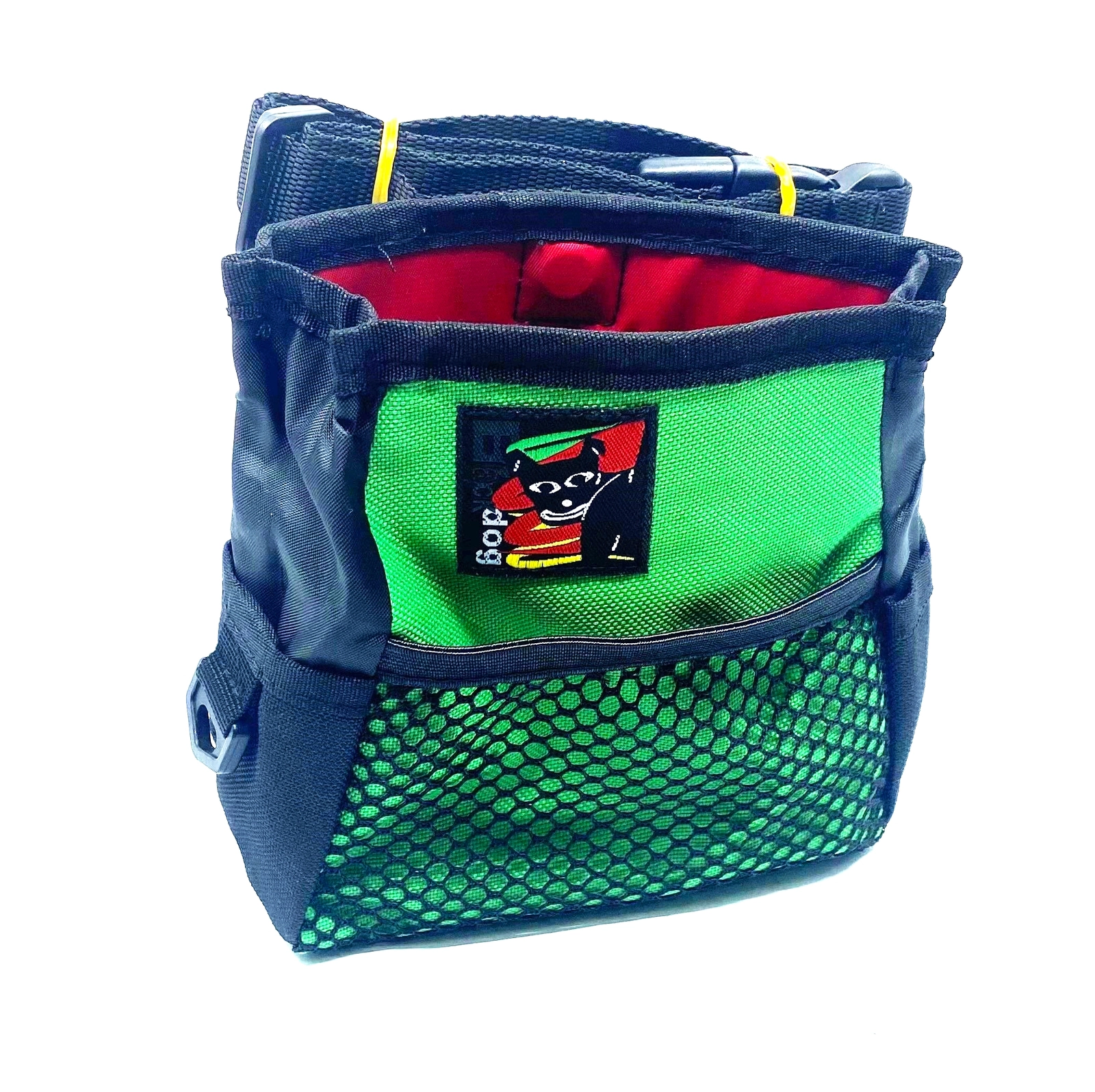 The front Mesh Pocket – for a ball or treat toy – allows air to circulate and helps prevent any build up of bacteria.